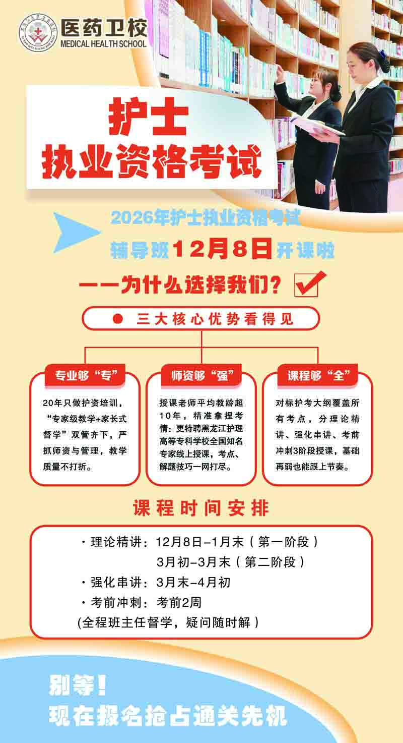 黑龍江醫(yī)藥衛(wèi)生學(xué)校護(hù)考輔導(dǎo)班盛大開課!