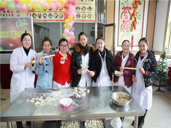大家在一起搟面皮、包餃子,熱鬧非凡。后勤伙食科更是精心為大家準(zhǔn)備了豐盛的自助餐。內(nèi)容豐富、精彩紛呈的聯(lián)歡活動由行政校長助理蘇曉云及就業(yè)辦主任趙楠主持。整場聯(lián)歡會由4個集體游戲及9個節(jié)目組成,精彩的歌舞表演、幽默的小品、緊張比拼的集體游戲充分展現(xiàn)出醫(yī)藥衛(wèi)校年輕向上、團結(jié)拼搏、凝心聚力的團隊精神,大家各顯才能,傾情演出,為2015年畫上了圓滿而歡樂的句號,在馬上到來的2016年,醫(yī)藥衛(wèi)校人將繼續(xù)以飽滿的熱情、務(wù)實的作風(fēng)和勤奮的工作,努力提高教育教學(xué)質(zhì)量,為我們共同的事業(yè)不斷奮斗!