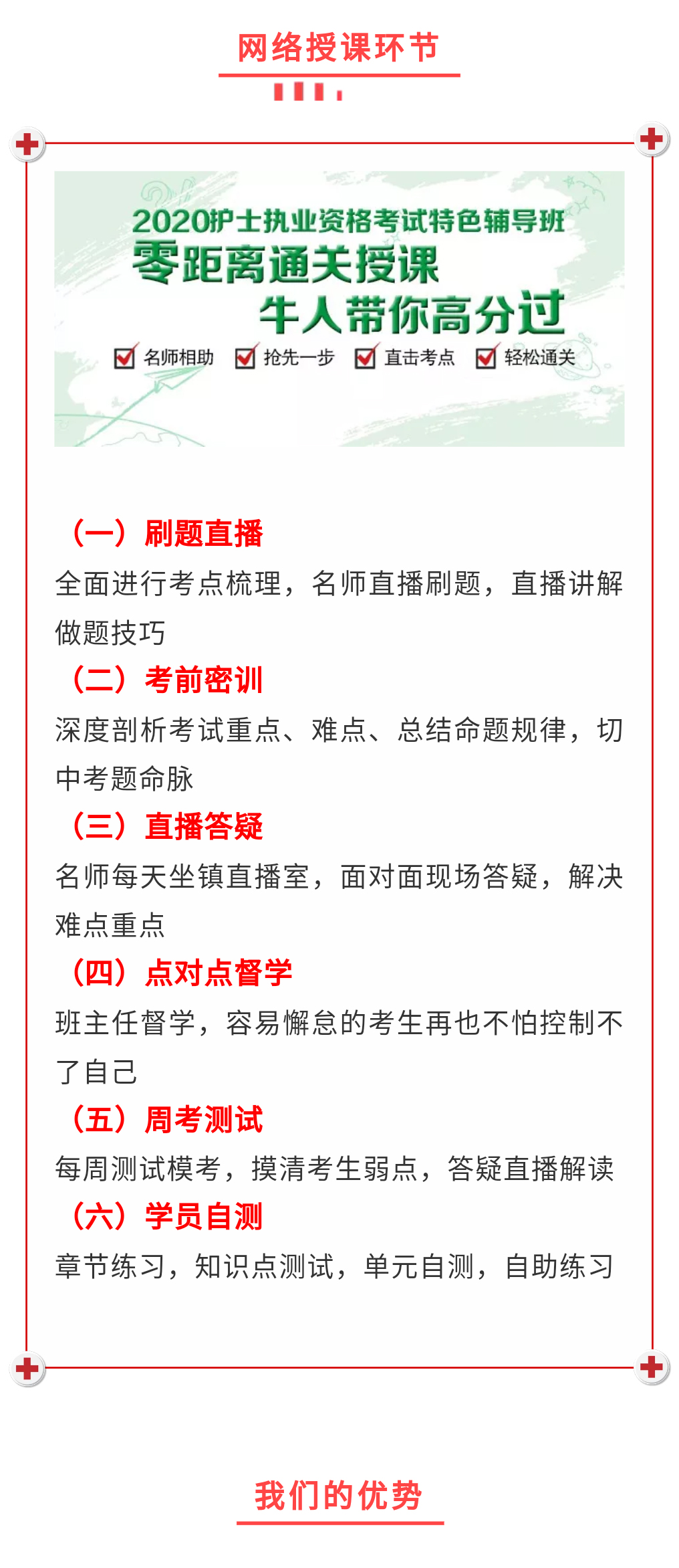 要想成為一名合格的護(hù)士,必須要通過(guò)國(guó)家護(hù)士執(zhí)業(yè)資格考試,由于疫情影響,萬(wàn)千學(xué)子不能像往常一樣坐在教室里學(xué)習(xí),為了讓參加護(hù)考的學(xué)生順利通關(guān),黑龍江醫(yī)藥衛(wèi)生學(xué)校在全國(guó)率先推出執(zhí)護(hù)網(wǎng)絡(luò)課程,有一群“牛人”,一支專家式護(hù)考團(tuán)隊(duì)通過(guò)視頻課程、幾萬(wàn)套題庫(kù)、線上答疑等方式進(jìn)行輔導(dǎo),以此抗擊疫情,他們知識(shí)和技能過(guò)硬,有豐富的執(zhí)護(hù)輔導(dǎo)經(jīng)驗(yàn),護(hù)考通過(guò)率屢創(chuàng)新高,享譽(yù)龍江大地。疫情期間延期開學(xué)不延期授課,通過(guò)線上報(bào)名、線上交費(fèi),線上授課、線上答疑、新老考生同時(shí)開課。
